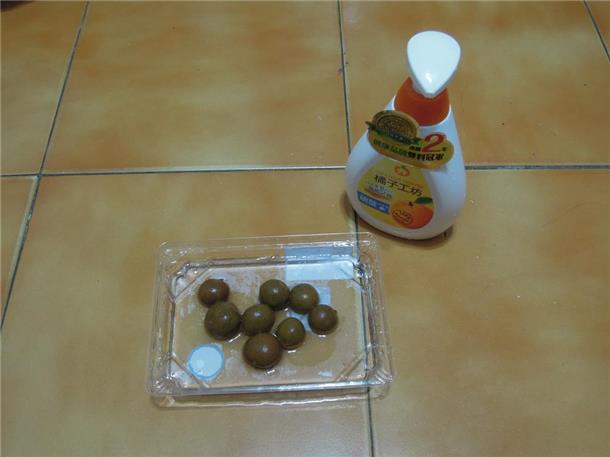 先用洗滌劑清洗過後再用清水洗,一樣,雖然倒下去一樣有濃濃的橘子味,洗過之後就沒味道了,龍眼並不會變橘子這樣。